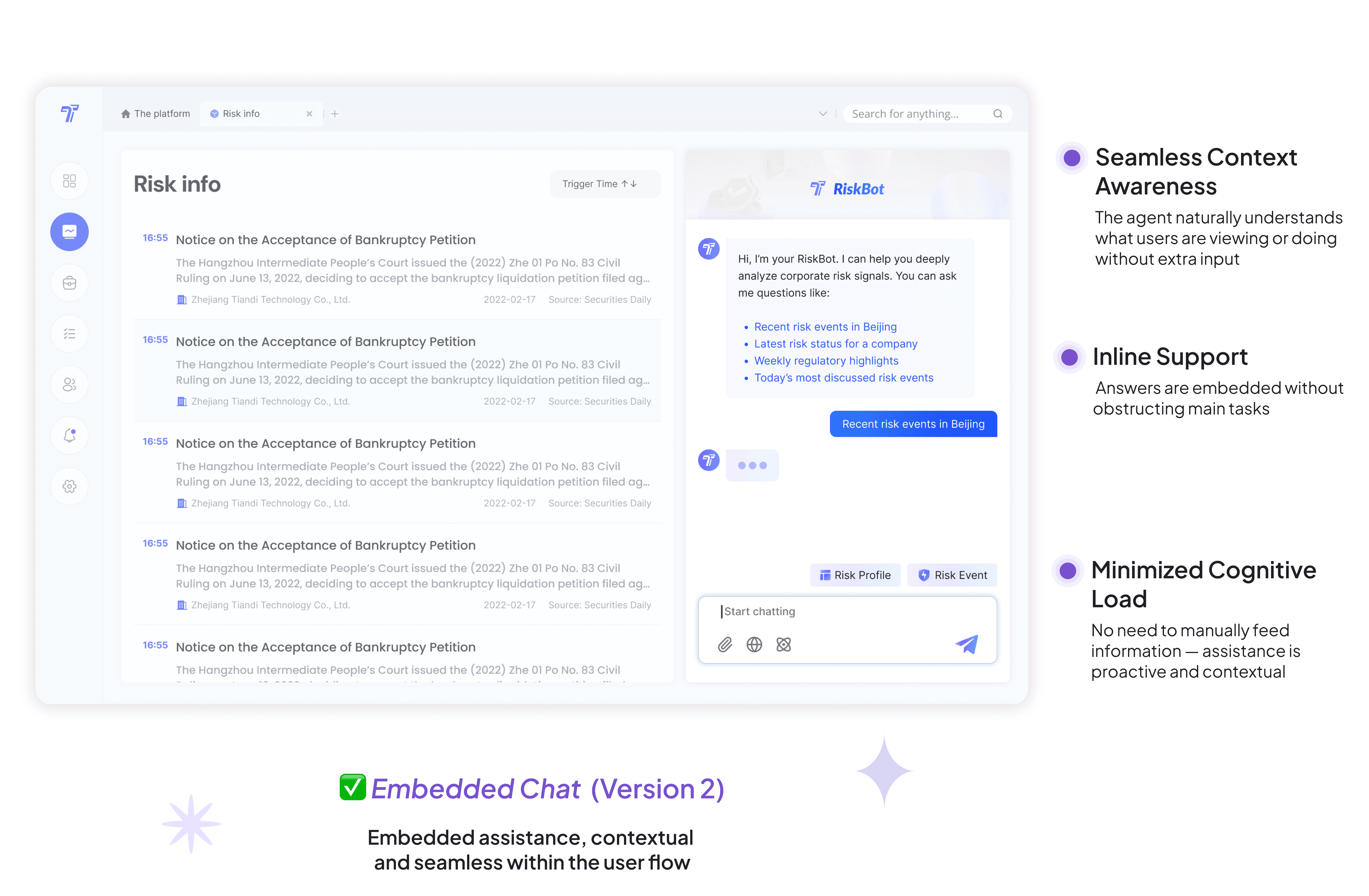 The system ingests large volumes of real-time, multi-source data. The Agent had to extract what matters — and do it without overwhelming users.