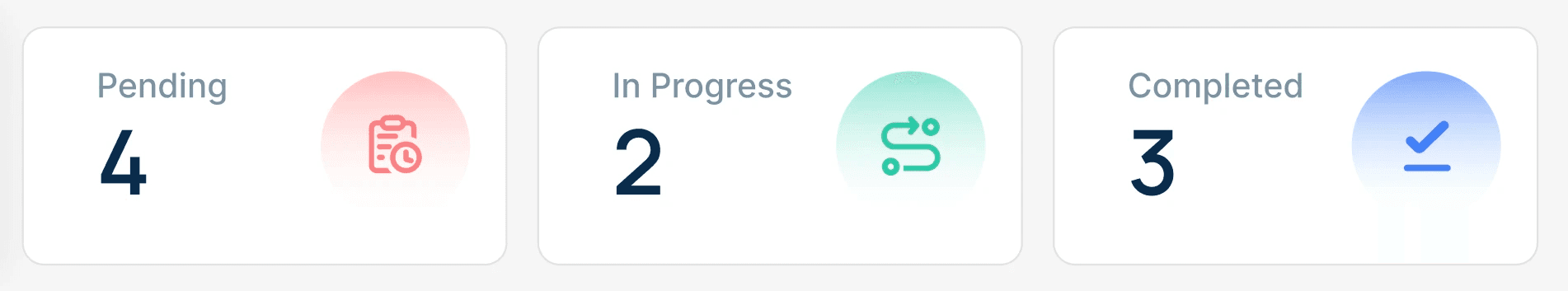 Color-coded task summaries help users instantly know what’s pending, in progress, or completed.