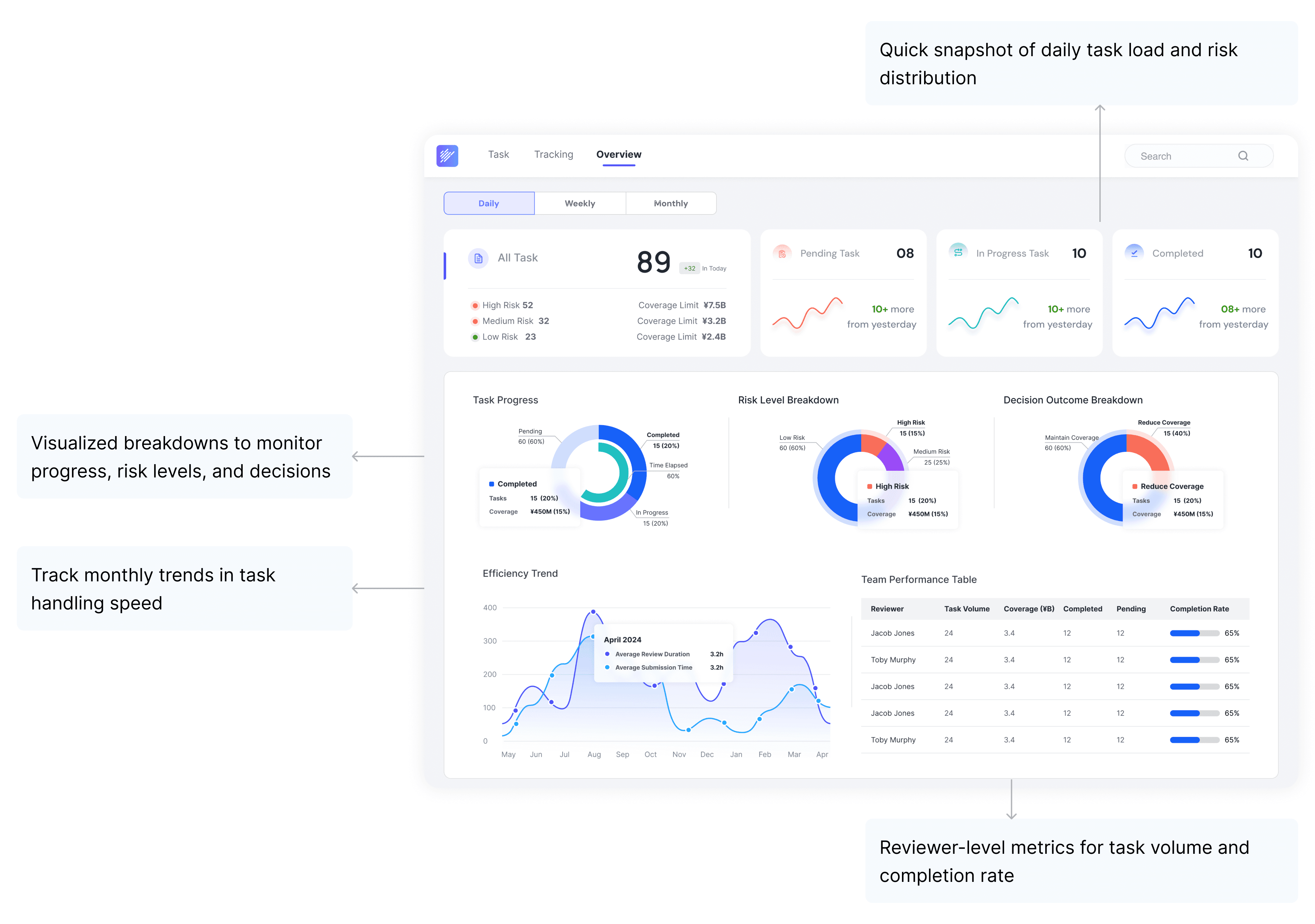 A centralized task dashboard enhances visibility, so approvers never miss critical cases.
